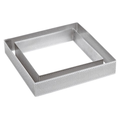 Tart Ring, 5-7/8"L x 5-7/8"W x 1-3/8"H, square, perforated, smooth interior, flat edge, welded, dishwasher safe, stainless steel, Paderno, Bakeware (Special Order Item)