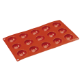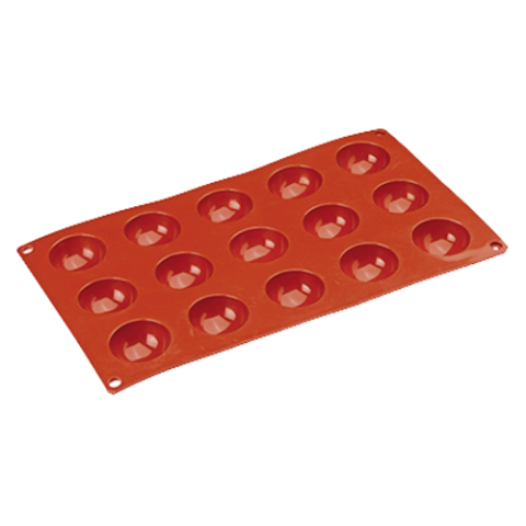 Mold, hemisphere, mini, .67 oz., (15) 1-1/2" dia. x 3/4"H molds, 11-7/8"L x 6-7/8"W O.A., flexible, temperature resistance -40° F to 500° F, reusable, dishwasher suitable, microwave safe, non-stick, silicone, red, Paderno, Bakeware