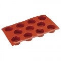 Mold, muffin, mini, 2 oz., (11) 2" dia. x 1-1/8"H molds, 11-7/8"L x 6-7/8"W O.A., flexible, temperature resistance -40° F to 500° F, reusable, dishwasher suitable, microwave safe, non-stick, silicone, red, Paderno, Bakeware