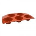 Mold, muffin, 3-3/8 oz., (5) 3-1/8" dia. x 1-3/8"H molds with 1-13/16" dia. bases, 11-7/8"L x 6-7/8"W overall, flexible, temperature resistance -40° F to 500° F, reusable, dishwasher suitable, microwave safe, non-stick, silicone, red, Paderno, Bakeware