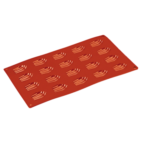 Mold, Madeleine, mini, .33 oz., ( 20) 1-1/8"W x 1-5/8"L x 1-1/2"H molds, 11-7/8"L x 6-7/8"W O.A., flexible, temperature resistance -40° F to 500° F, reusable, dishwasher suitable, microwave safe, non-stick, silicone, red, Paderno, Bakeware