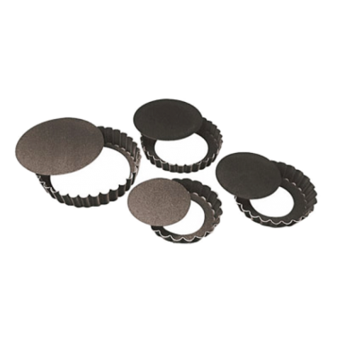 Tart Pan, 4-3/4" dia. x 3/4"H, removable bottom, fluted, flared, hand wash only, non-stick coated steel, PFOA-free coating, Paderno, Bakeware