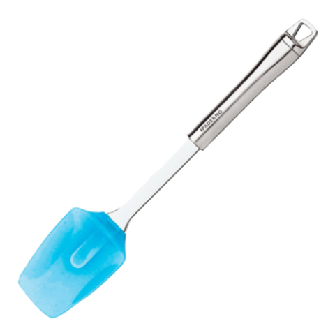 Serving Spoon/Spatula, 11-5/8"L, hanging loop, dishwasher suitable, blue silicone blade, 18/10 stainless steel handle, Paderno, Series 48278 (Special Order Item)