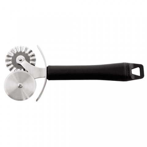 Double Pastry Cutting Wheel, 1-5/8" dia. x 7"L, hanging loop, dishwasher suitable, 18/10 stainless steel, polypropylene handle, Paderno, Series 48280 (Special Order Item)
