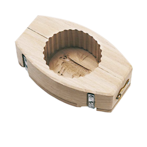 Butter Mold, 4-1/2" oz., 3-1/2"W x 6-1/4"L x 2"H, cow imprint, wooden, hinged, Paderno, Tools & Utensils