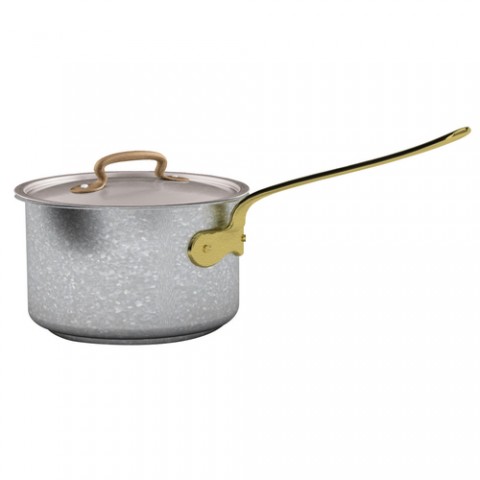 Sauce Pot, 2 qt., 6-1/4" dia., with lid, (1) riveted brass handle, induction capable, dishwasher suitable, 18/10 stainless steel, 1965 Vintage Cookware