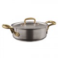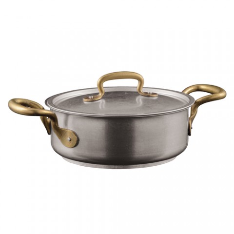 Casserole Pot, 2-3/5 qt., 7-7/8" dia., round, with lid, (2) riveted brass handles, induction capable, dishwasher suitable, 18/10 stainless steel, 1965 Vintage Cookware