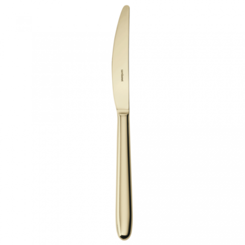Table Knife, 9-1/4", solid handle, dishwasher suitable, 18/10 stainless steel, PVD mirror champagne coating, Sambonet, Hannah Mirror Champagne