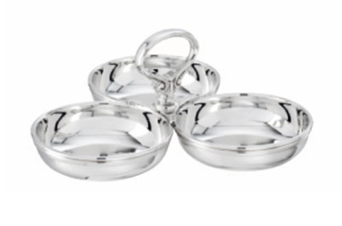 Relish Dish, 3 compartment, 4" x 3-1/2", dishwasher suitable, stainless steel, silver-plated (EPSS), Contour (Special Order Item)