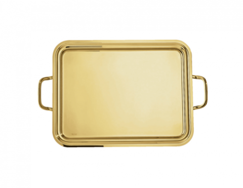 Tray with Handles Oblong, 15-3/4" x 10-1/4", PVD gold, dishwasher safe, Sambonet, Elite Gold