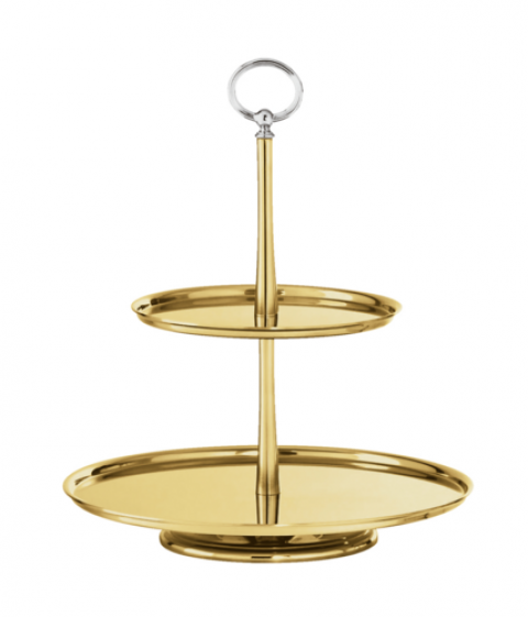 Pastry Stand 2 Tiers, 11" dia. x 12-3/4", PVD gold, dishwasher safe, Sambonet, Elite Gold