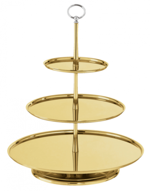 Pastry Stand 3 Tiers, 15" dia. x 18-1/2", PVD gold, dishwasher safe, Sambonet, Elite Gold