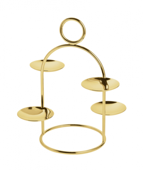 Petits Fours Stand 4 Small, 6-1/4" dia. x 7-7/8", PVD gold, dishwasher safe, Sambonet, Elite Gold