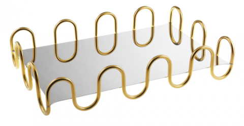 Rectangle Holder/Low Stand, 16 1/8" x 10 1/4" x 3 3/8"H, PVD Gold, Sambonet, Kyma (Special Order Item)