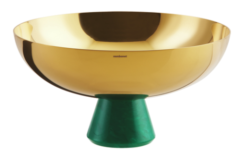 Footed Cup, 8" dia. x 4 1/4"H, round, PVD Gold/Green Resin, Sambonet, Madame