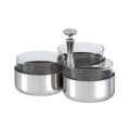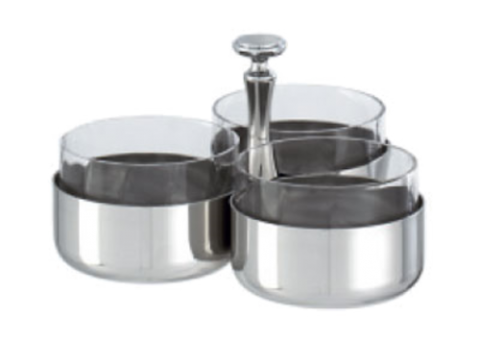 Relish Dish, 3-1/4" x 3-3/4"H, 3 compartments (14 oz. capacity each), with crystal inserts, dishwasher safe, 18/10 stainless steel, Sambonet, Elite S/S (Special Order Item)