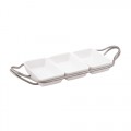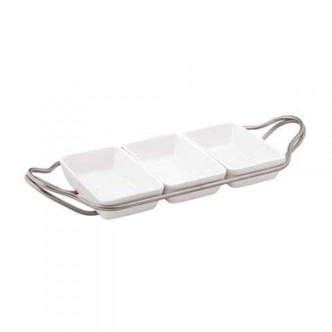 Appetizer Dish, 14-15/16"W x 7-1/8"D, with (3) compartment dishes, 18/10 stainless steel, dishwasher suitable, porcelain, antico finish, New Living, white