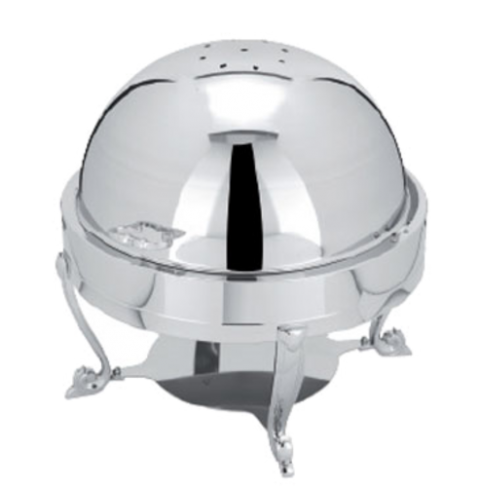 Chafing Dish, 13" x 17-1/4", round, solid alcohol heating, nickel legs and handle, 18/10 stainless steel, Asia S/S (Special Order Item)