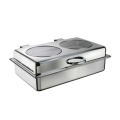 Chafer, 10 liter, 22-1/2" x 18-1/2" x 7-1/8", built-in, electric, rectangular, hinged lid with glass windows, closure on long side, 18/10 stainless steel, Sambonet, Atlantic Buffet System S/S, 120v/60/1-ph, 450 watts (Special Order Item)