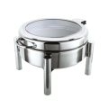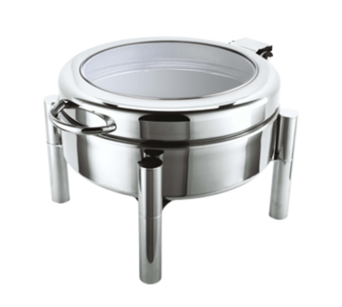 Chafer, 5 liter, 14" dia., x 10-5/8"H, round, solid alcohol heating, hinged lid with glass window, base included, 18/10 stainless steel, Sambonet, Atlantic Buffet System S/S