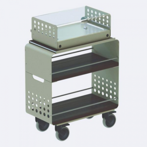 Mini Cheese Trolley, 27-1/2"L x 14-5/8"W x 39-3/8"H, stainless steel/wood, grey walnut, Sambonet, Radici, Made in Italy