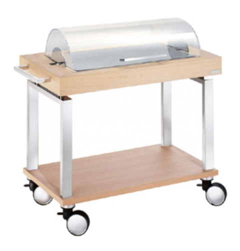 Cooled Trolley, 110 lb. capacity, 47-1/4" x 23" x 39-3/4", includes: lower deck with wooden barrier and eutectic pads, oak finish, 18/10 stainless steel, Sambonet, New York S/S (Special Order Item)