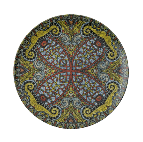 Plate, 10-7/8" dia., round, flat, microwave safe, porcelain, Arthur Krupp - Mandala A