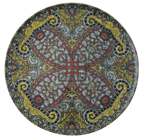 Plate, 12-5/8" dia., round, flat, microwave safe, porcelain, Arthur Krupp - Mandala A