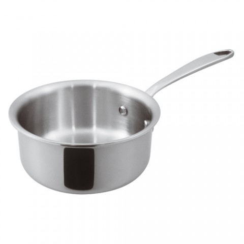 Mini Sauce Pan, 12 oz., 4" dia. x 1-3/4"H, without lid, induction ready, riveted handle, dishwasher safe, tri-ply stainless steel & aluminum, mirror polished finish, Paderno, Mini S/S Cookware