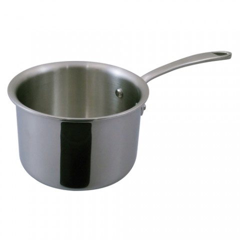 Mini Sauce Pan, 20 oz., 4" dia. x 2-3/4"H, without lid, induction ready, riveted handle, dishwasher safe, tri-ply stainless steel & aluminum, mirror polished finish, Paderno, Mini S/S Cookware