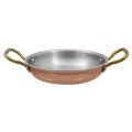 Gratin, 64 oz., (2 qt.), 9-1/2" dia. x 1-3/4"H, round, 3-ply, copper, aluminum and 18/10 stainless steel construction, riveted solid brass handle, induction ready, safe for: gas/electric/radiant heat sources (hand wash only), Paderno, Copper Series 15500