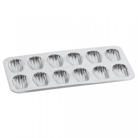 Madeleine Pan, makes (12) madeleines, 15-5/8"L x 7-7/8"W x 3/4"H overall, tin, Paderno, Bakeware