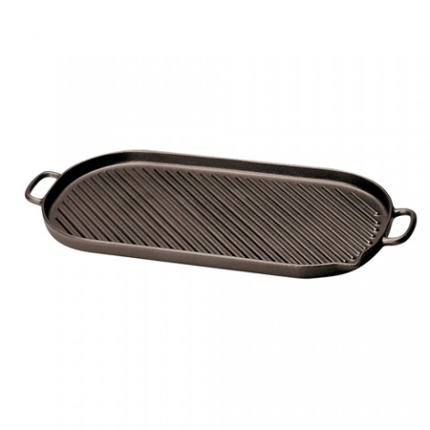 Grill, 18-3/8"L x 9"W, oval, large, heavy grooved twice enameled cast iron construction surface, dual handles, Paderno, Chasseur (to be discontinued, contact factory for availability)