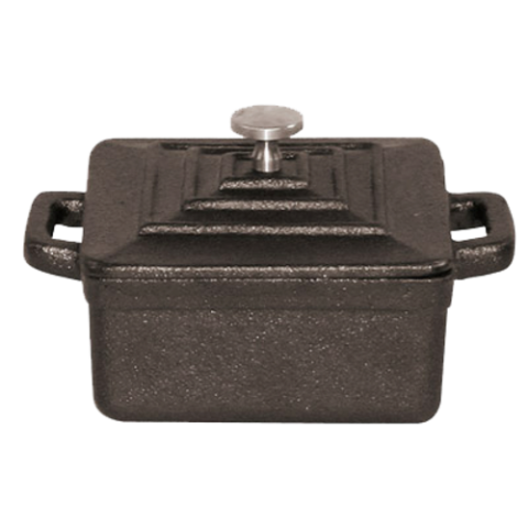 Mini Dutch Oven, 8-1/2 oz., 3-3/4" x 1-3/4" deep, square, once enameled cast iron construction, matching lid with heat resistant knob, black, Paderno, Mini Dutch Ovens