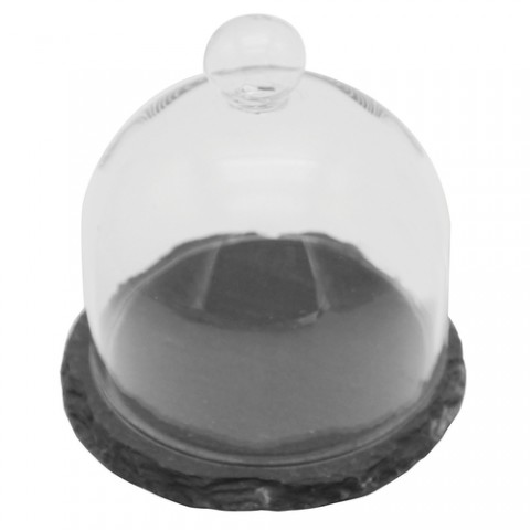 Mini Slate Tray, 4" dia. x 5/16"H, round, includes (1) 3-5/8"H glass cloche, slate can be pre-chilled to help maintain temperature of food, hand wash only, natural slate, black, Paderno, Tabletop