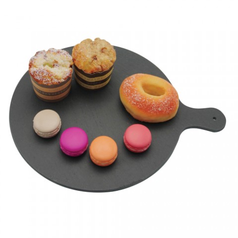 Paddle Board, 9" dia. x 5/16"H, round, can be pre-chilled to help maintain temperature of food, hand wash only, natural slate, black, Paderno, Tabletop (Special Order Item)