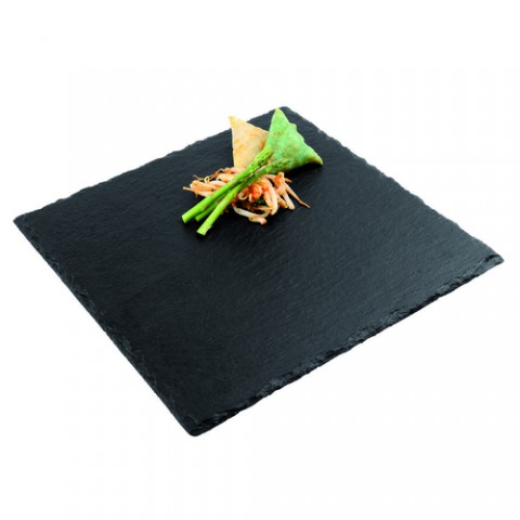 Slate Tray, 11-7/8" x 11-7/8" x 5/16", square, slate can be pre-chilled to help maintain temperature of food, hand wash only, natural slate, black, Paderno, Tabletop
