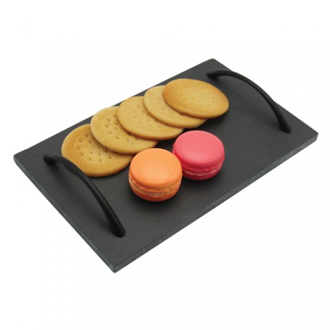 Slate Tray, 9" x 4-1/2", 5/16" thick, rectangular, with (2) black stainless steel handles, hand wash only, natural slate, black, Paderno, Tabletop