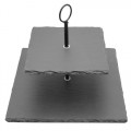Slate Stand, 2-tier, 11-7/8" x 11-7/8" bottom tier, 9-7/8" x 9-7/8" top tier, 5/16" thick, square, 9-1/4"H overall with center ring handle, hand wash only, natural slate, black, Paderno, Tabletop