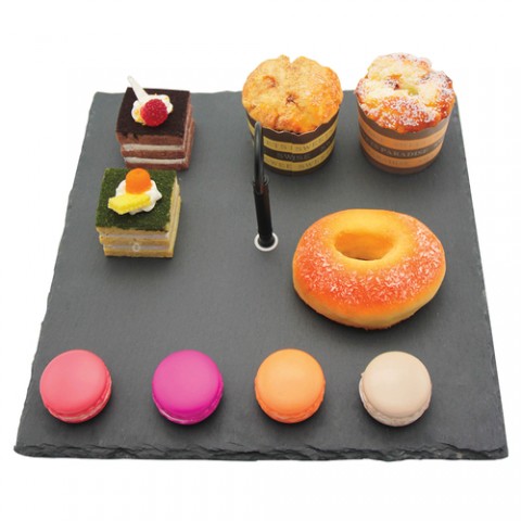 Slate Tray, 11-7/8" x 11-7/8", 5/16" thick, square, with 5" center ring handle, hand wash only, natural slate, black, Paderno, Tabletop