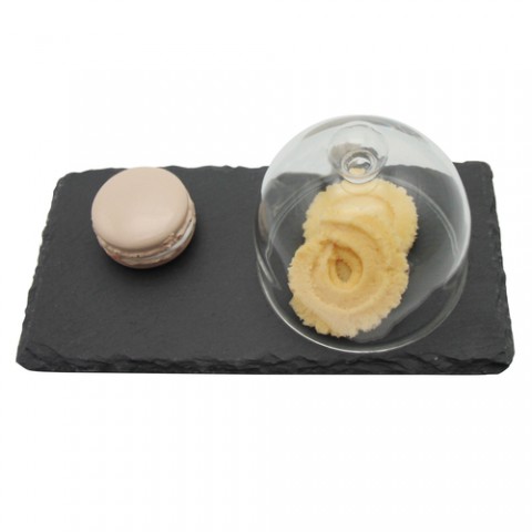 Slate Board, 7-7/8" x 4" x 5/16"H, rectangular, includes (1) 3-5/8" x 3-5/8" glass cloche, slate can be pre-chilled to help maintain temperature of food, hand wash only, natural slate, black, Paderno, Tabletop
