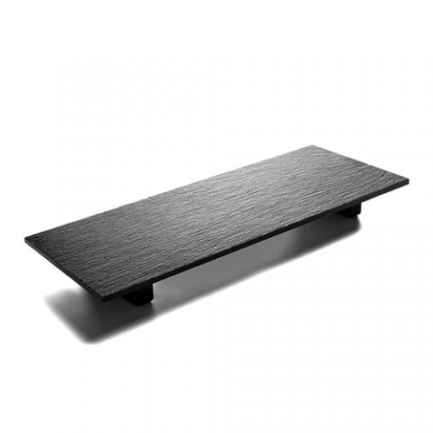 Slate Serving Stand, 18-7/8" x 6-3/4" x 1-1/2"H, 5/16" thick, rectangular, with risers, slate can be pre-chilled to help maintain temperature of food, hand wash only, natural slate, black, Paderno, Tabletop