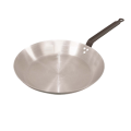Frying Pan, without lid, 10-1/4" dia. x 2-1/8"H, polished carbon steel, flat iron handle affixed with rivets, Paderno, Blue Black & Carbon Steel
