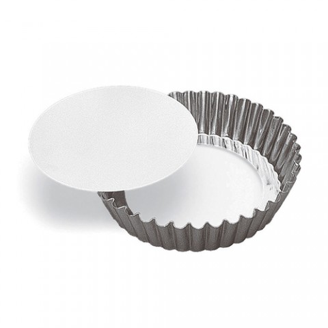 Tart Mold, 4" dia. x 1-1/8" deep, fluted, flared sides, straight edges, removable bottom, tin plated, Paderno, Bakeware