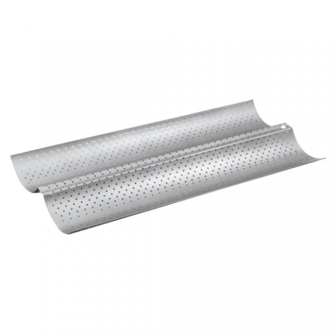 Baguette Ban, 15"L x 6-1/4"W x 1"H, (2) 2-7/8"W rows, perforated design, steel with non-stick coating, Paderno, Bakeware