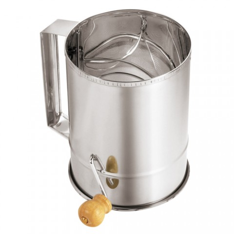 Sifter, 5-cup, 4-1/4" dia. x 5-5/8"H, with crank handle, stainless steel, Paderno, Bakeware
