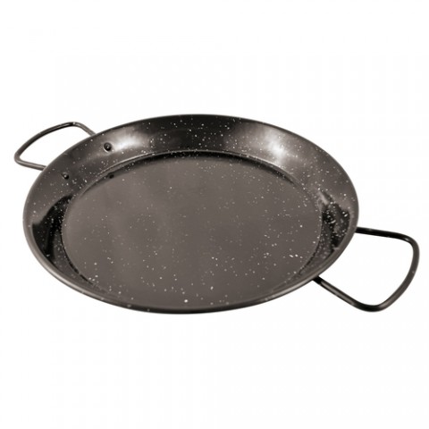 Paella Pan, 11-7/8" dia. x 1-3/4"H, dual handles, oven and induction safe, enameled carbon steel, Paderno, Blue Black & Carbon Steel