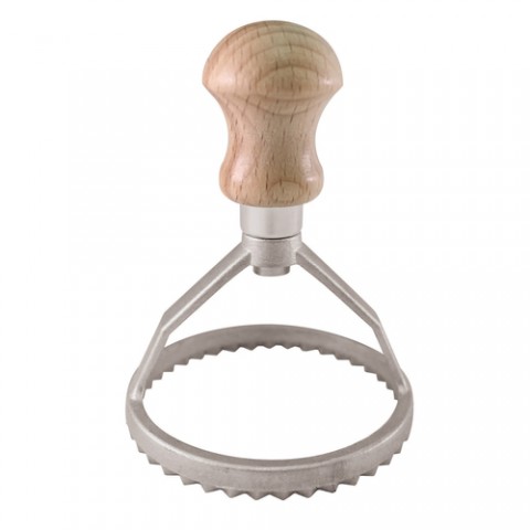 Ravioli Stamp, 3-1/4" dia. x 4-1/4"H, round, aluminum with beechwood handle, Paderno, Ethnic Cuisine