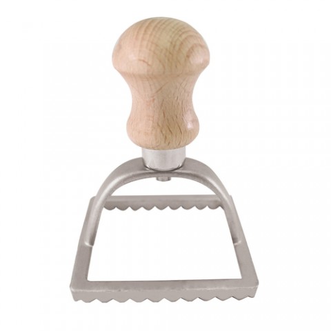 Ravioli Stamp, 2-5/8"L x 2-5/8"W x 3-7/8"H, square, aluminum with beechwood handle, Paderno, Ethnic Cuisine