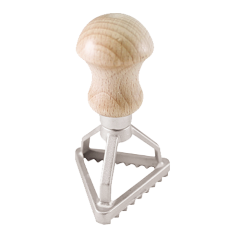 Ravioli Stamp, 2-1/4"L x 2-1/4"W x 3-3/4"H, triangle, aluminum with beechwood handle, Paderno, Ethnic Cuisine (Special Order Item)